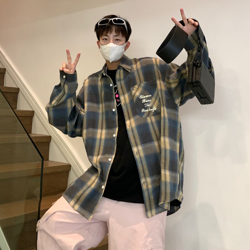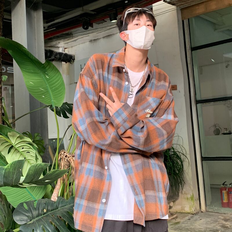 迈特优长袖格子衬衫男秋季新款美式复古潮牌衬衣宽松休闲外套