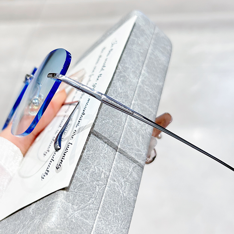无边框近视眼镜男超轻纯钛切边眼镜配防蓝光变色无框成品眼镜男士