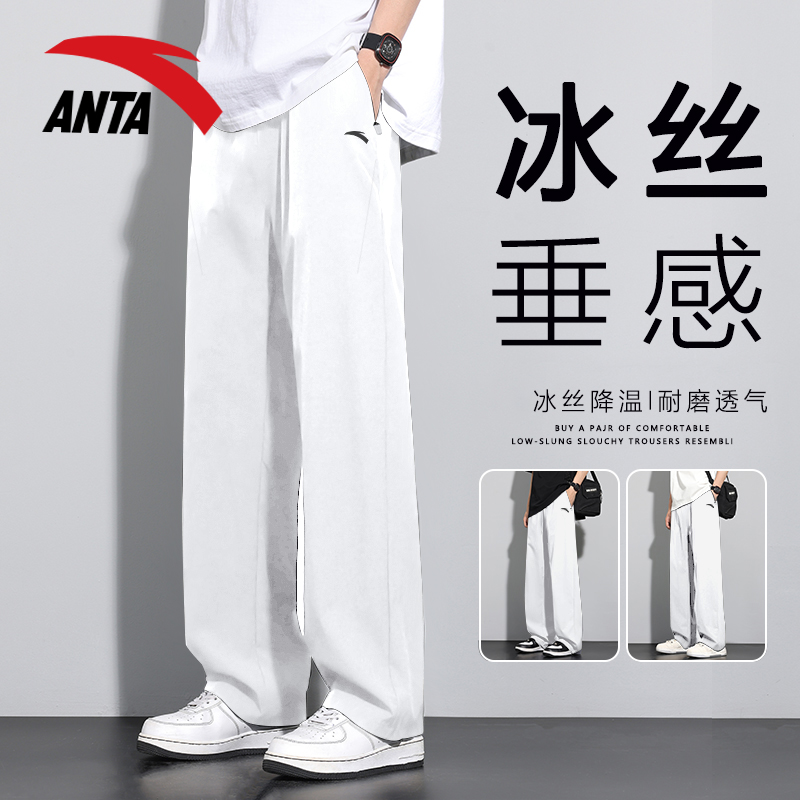安踏裤子男夏季薄款冰丝休闲裤夏天宽松直筒梭织速干运动长裤男士