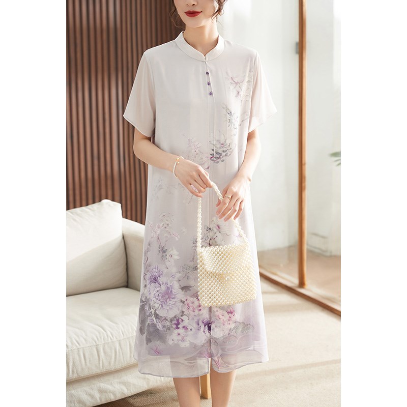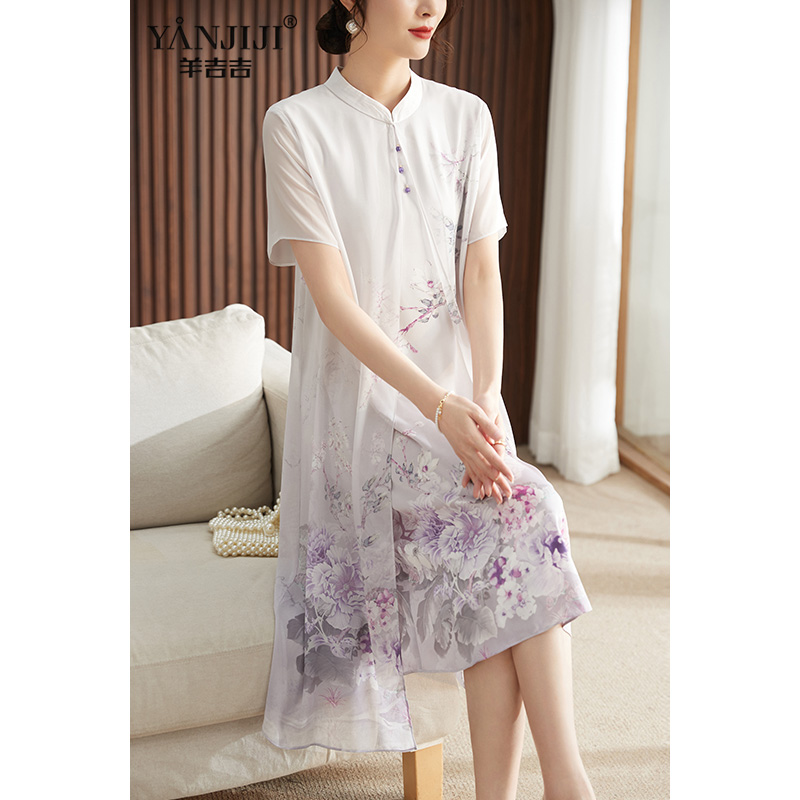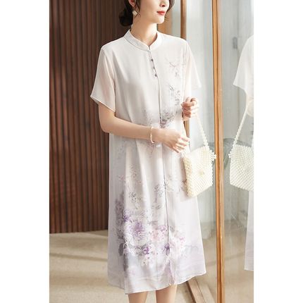 妈妈夏装连衣裙中老年洋气改良旗袍裙中年妇女40岁新中式国风长裙