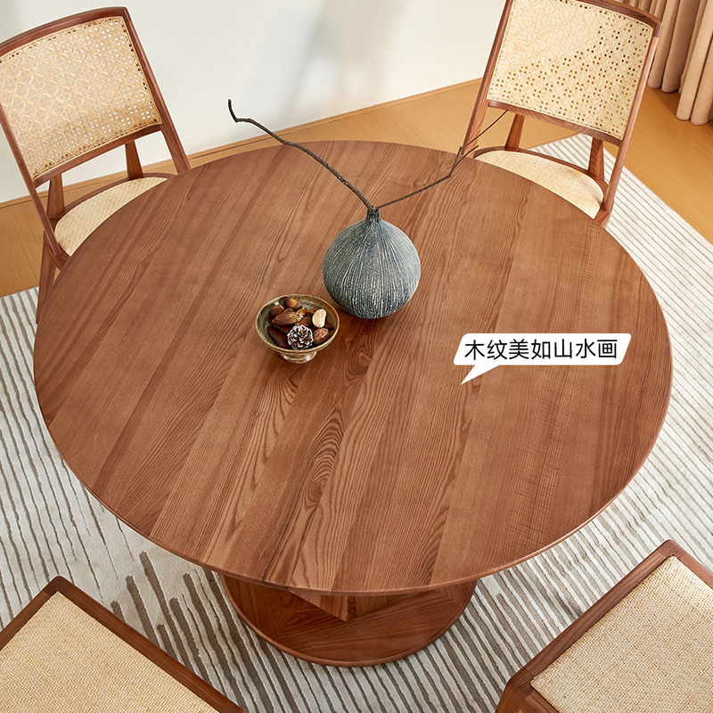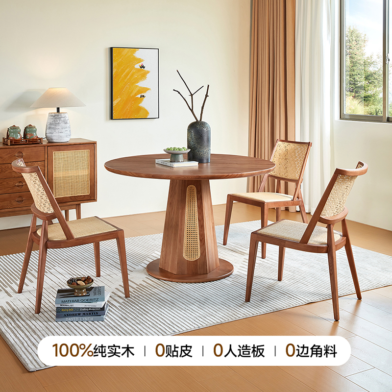 新款小满餐台实木餐厅餐桌椅组合圆形阳台洽谈藤编家用民宿咖啡厅