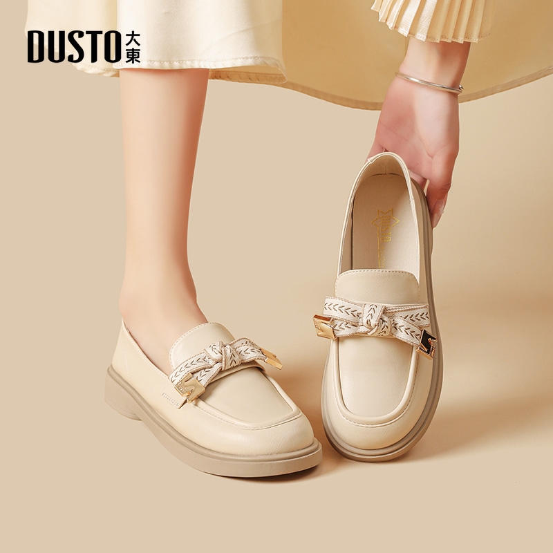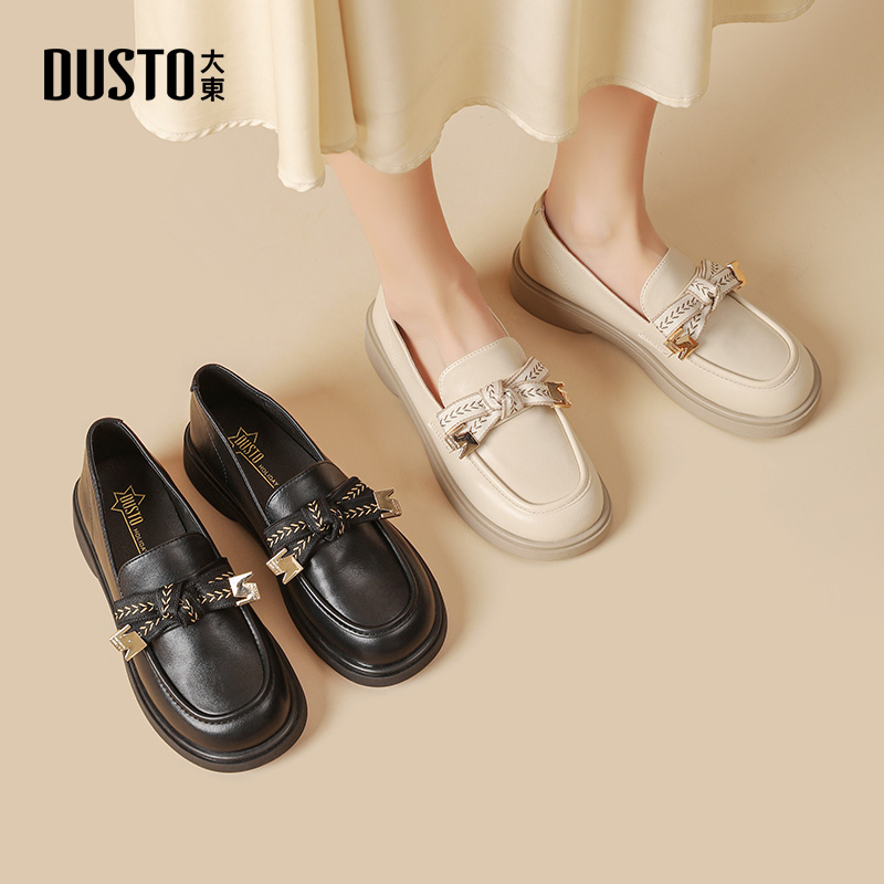 大东官方巨软乐福鞋女2025新款秋冬黑色软底单鞋女鞋英伦风小皮鞋