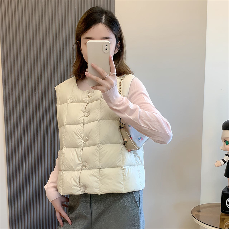 2025冬季新款纽扣羽绒马甲背心女设计感轻薄韩版内搭保暖短款外套