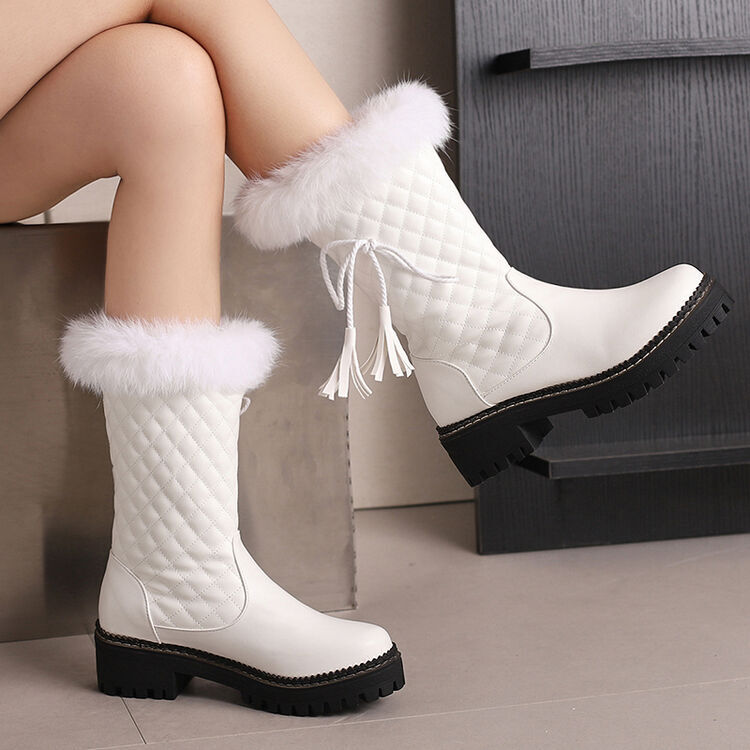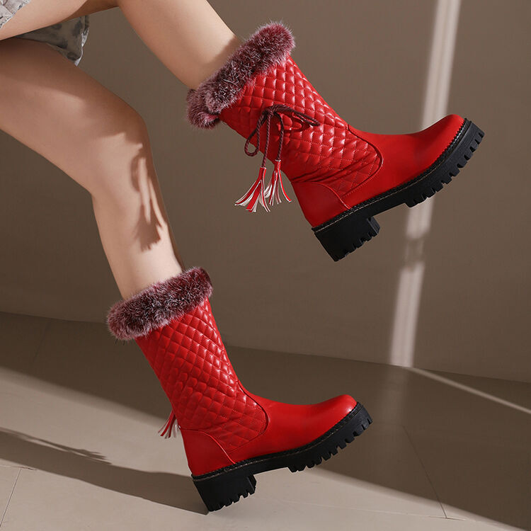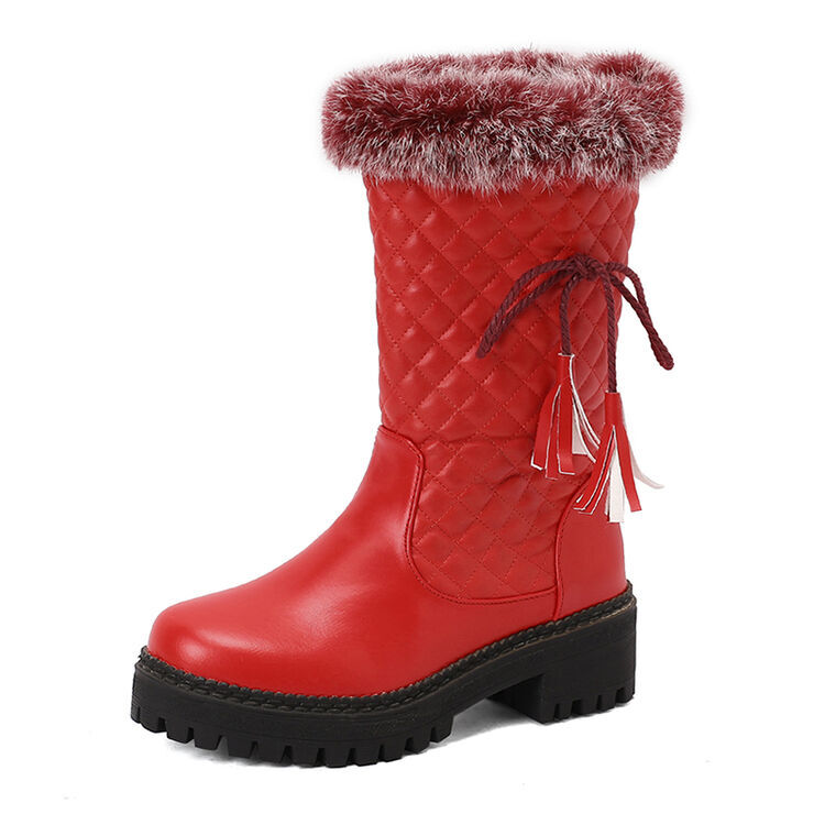 冬季皮靴学生鞋红色白色靴子平底雪地靴厚绒毛靴棉靴大码女靴 XH