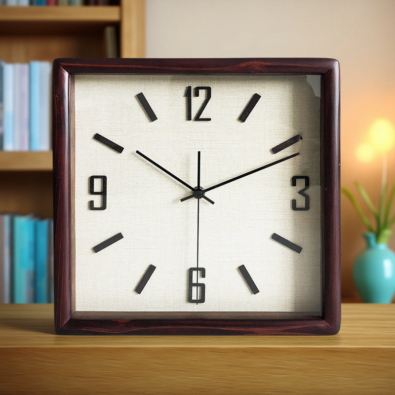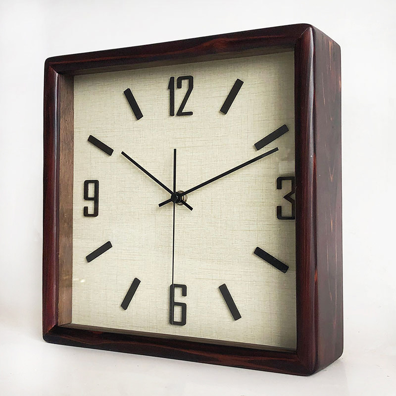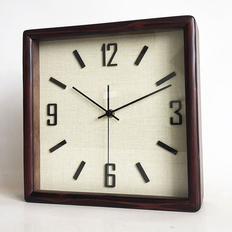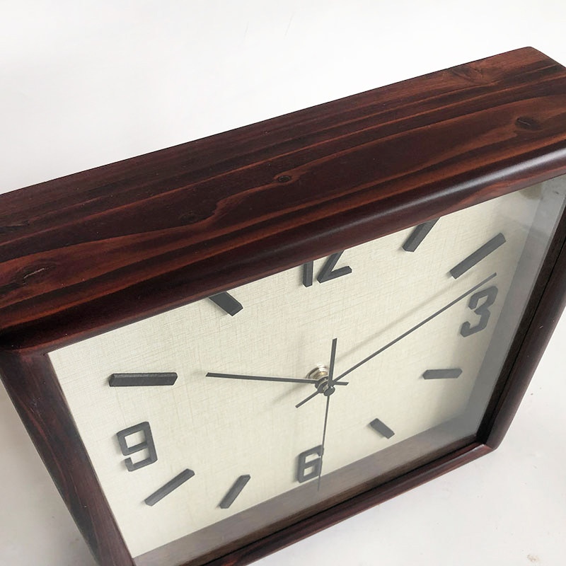 简约静音方形实木挂钟座钟两用台钟现代石英钟北欧原木中古侘寂风