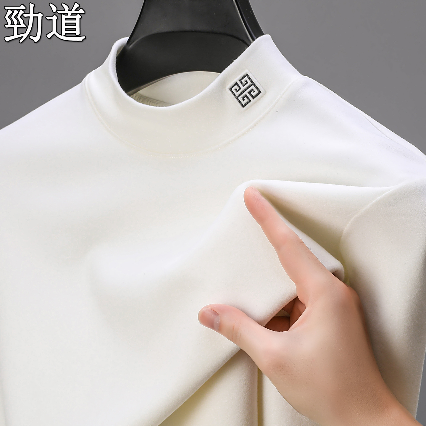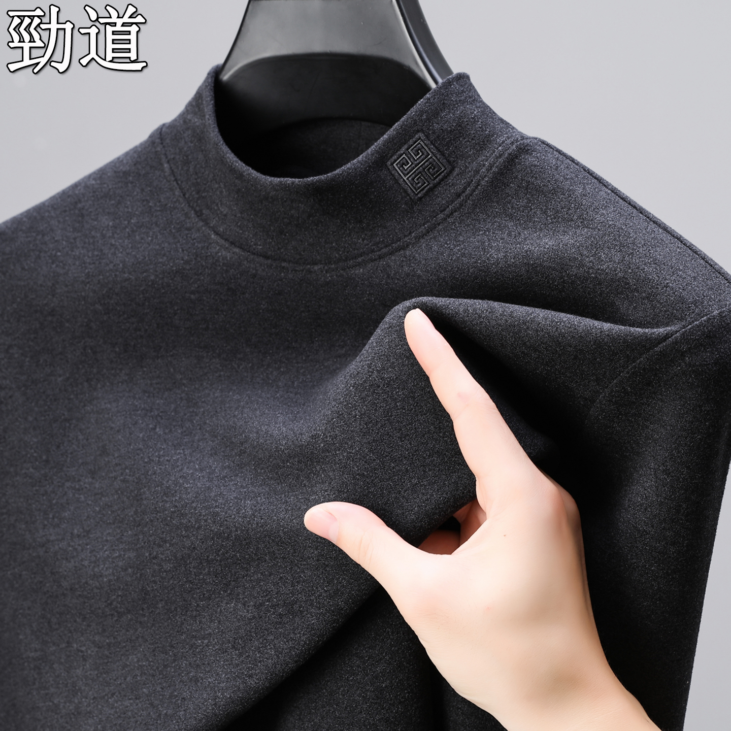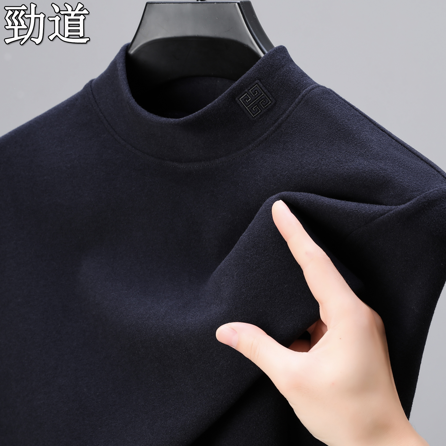 秋冬新款双面绒男士长袖t恤纯色保暖卫衣德绒打底衫半高领体恤潮