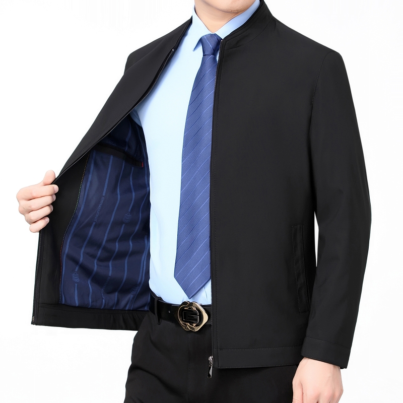 商场同款桑蚕丝夹克男士翻领春季中老年商务休闲爸爸装外套茄克衣