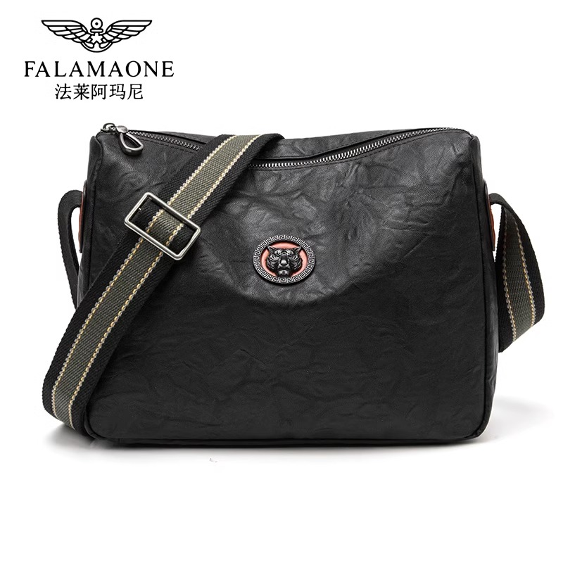 法莱阿玛尼男士单肩斜挎包2025新款时尚小包真皮牛皮通勤背包便携