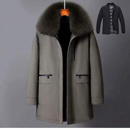 中老年人羽绒服男加厚中长款老年爸爸爷爷大码可脱卸内胆保暖外套