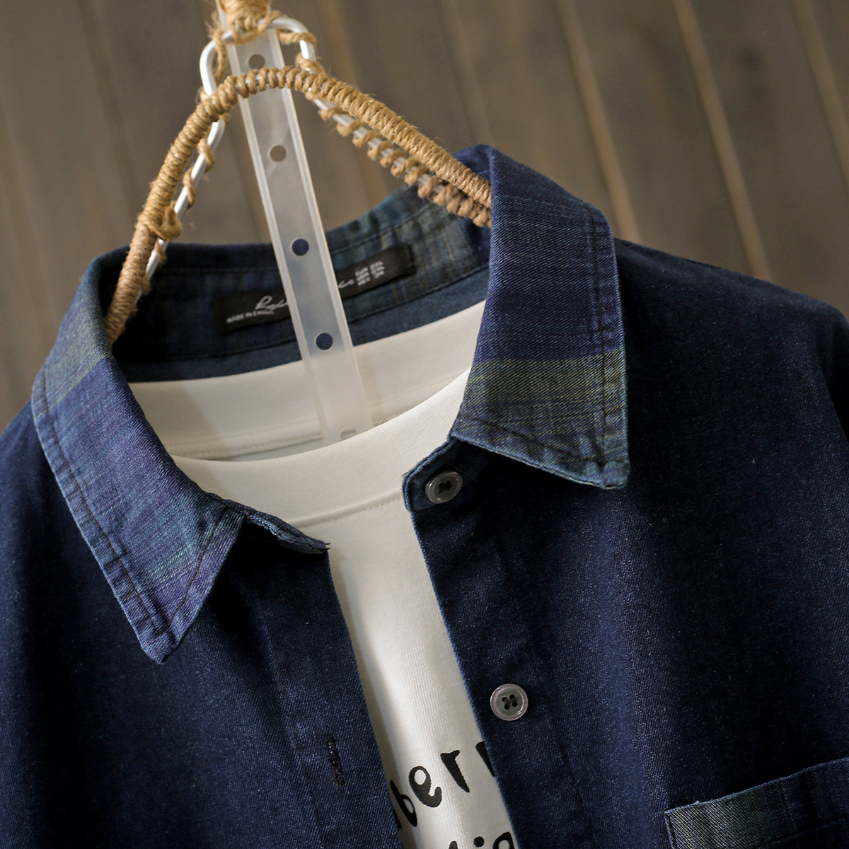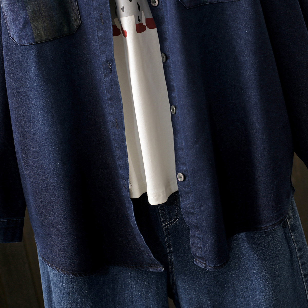 春秋200斤牛仔长袖渐变色衬衫