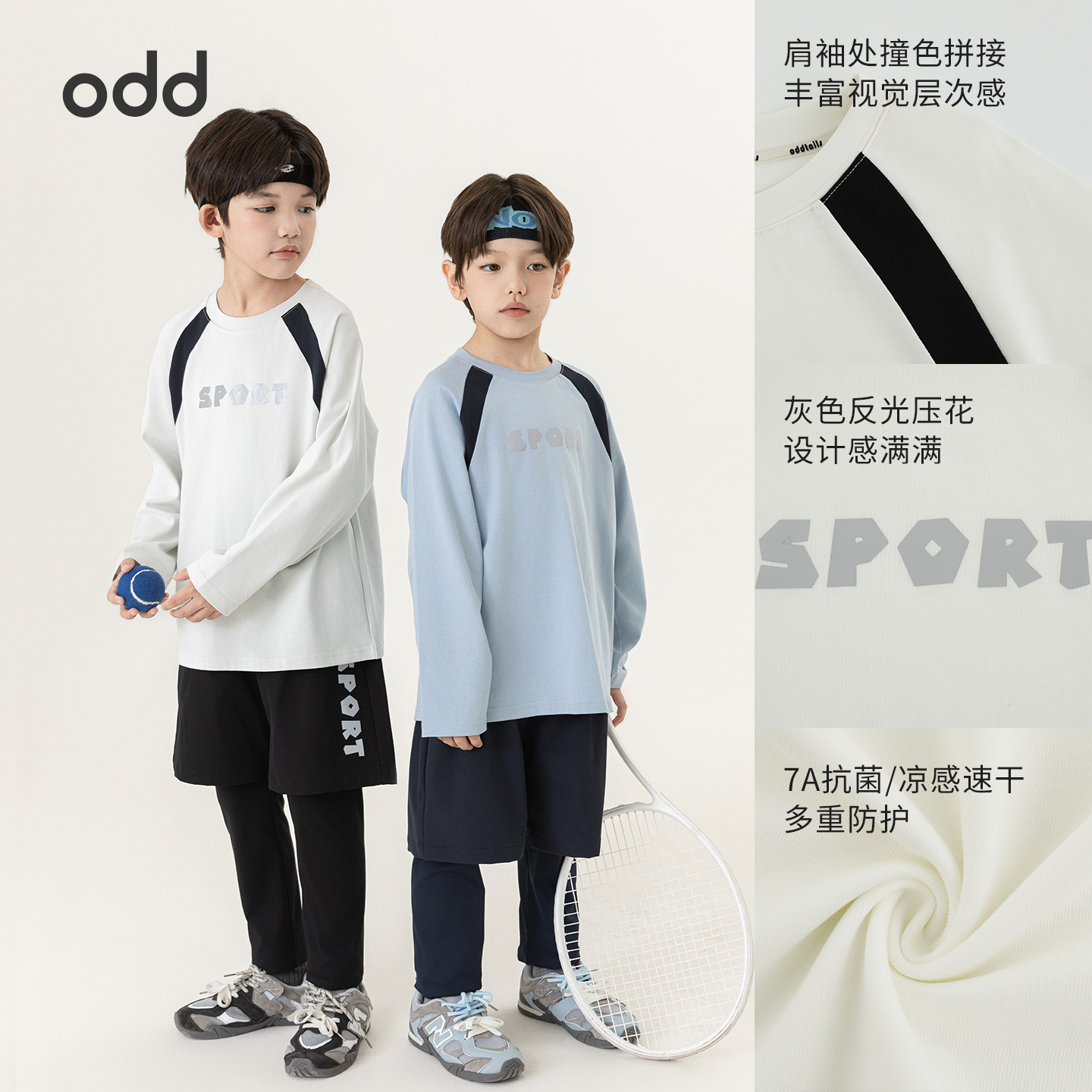 oddtails男童长袖T恤2025秋季新款上衣儿童纯棉运动速干抗菌秋装