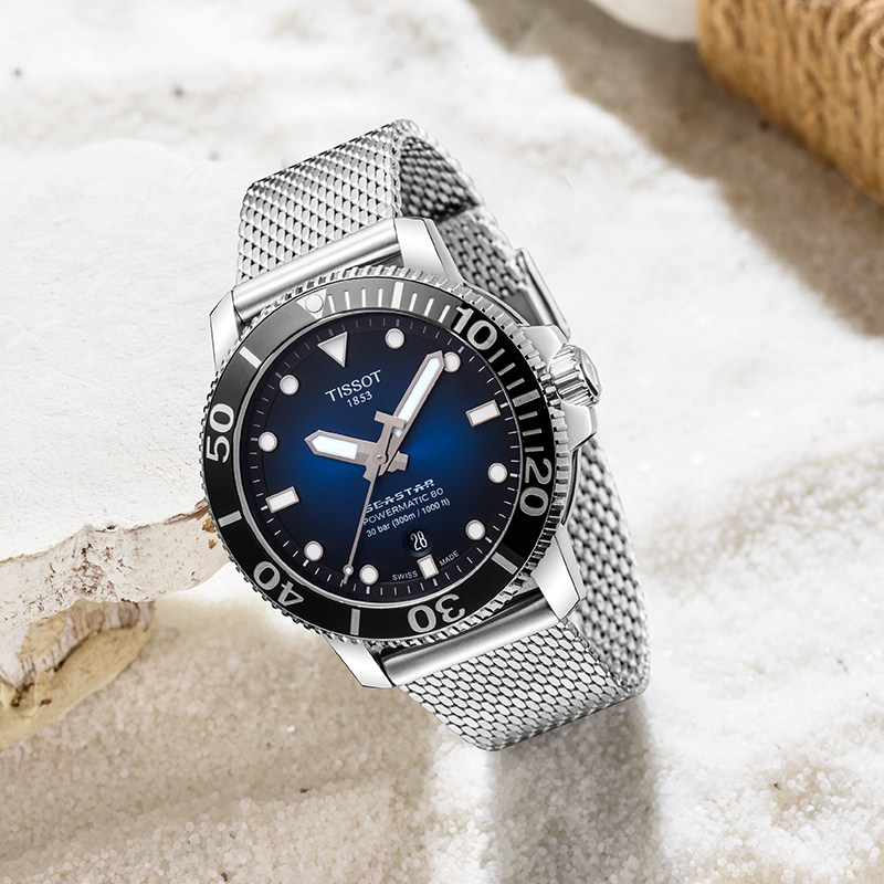 Tissot天梭海星潜水1000系列机械男表米兰带T120.407.11.041.02