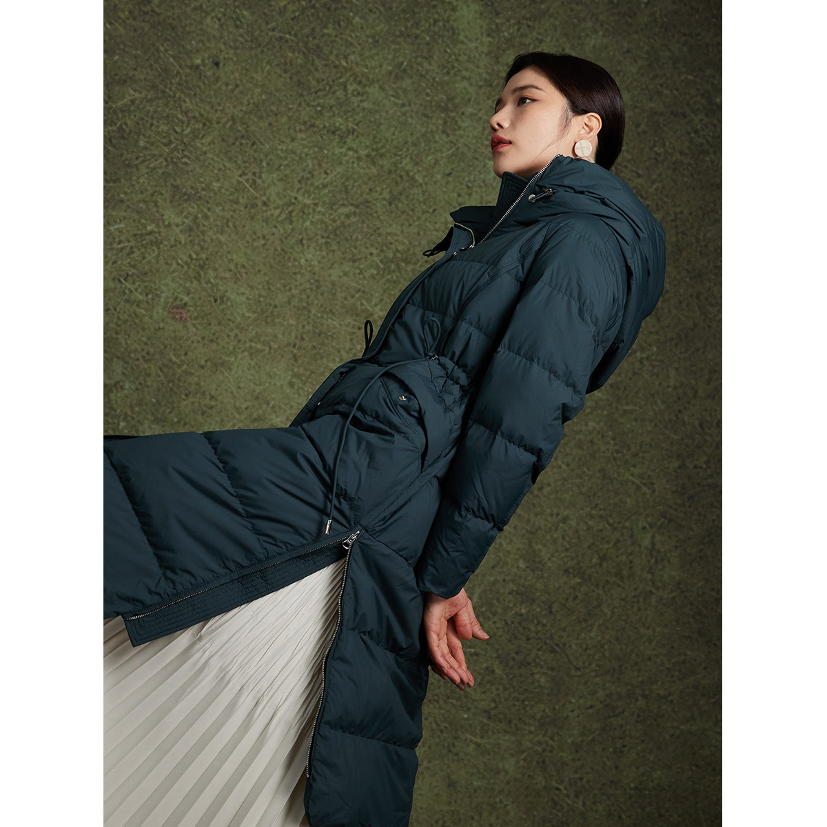 【松间雪】BBLLUUEE粉蓝衣橱商场同款寒冬暖意横纹中长款鹅绒服女