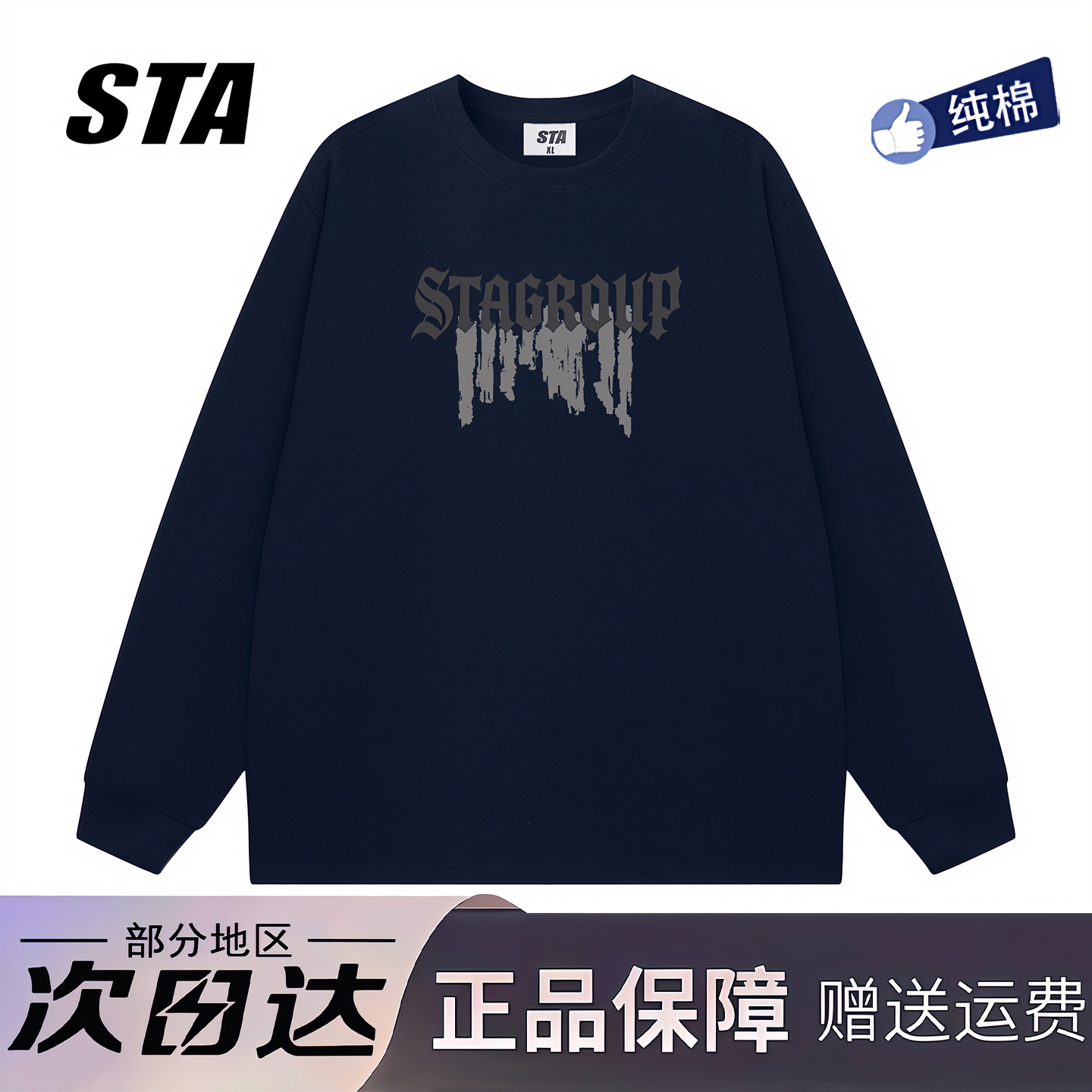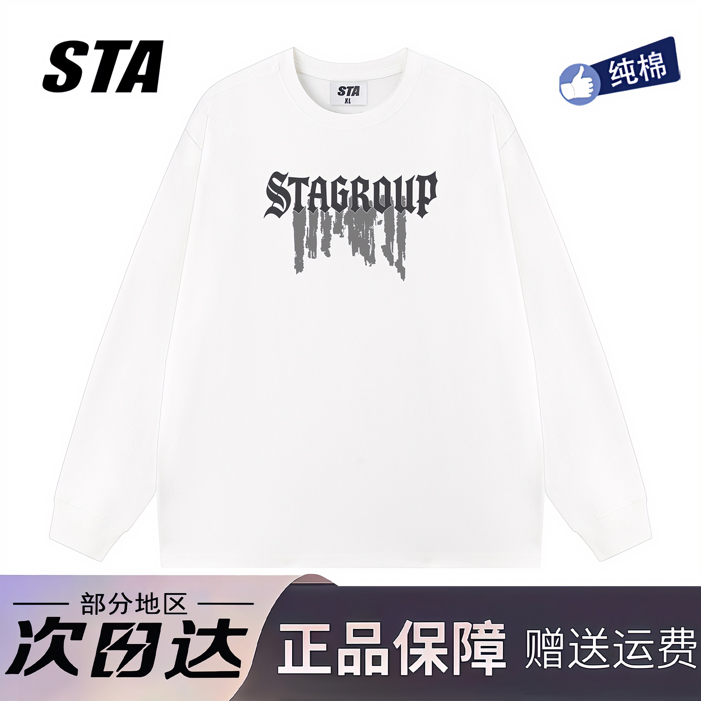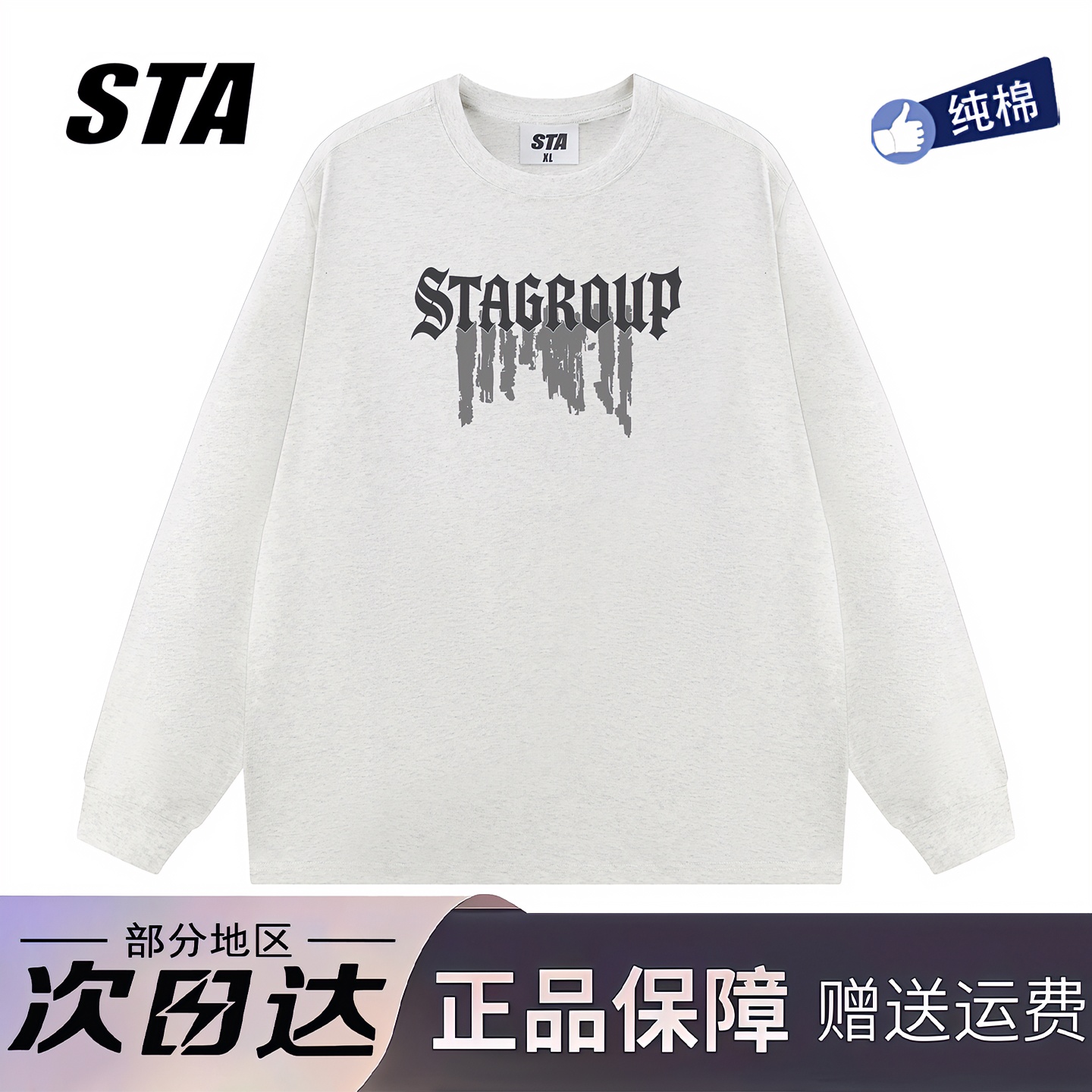STA旗舰店美式潮牌字母印花长袖男女高街重磅纯棉情侣宽松卫衣