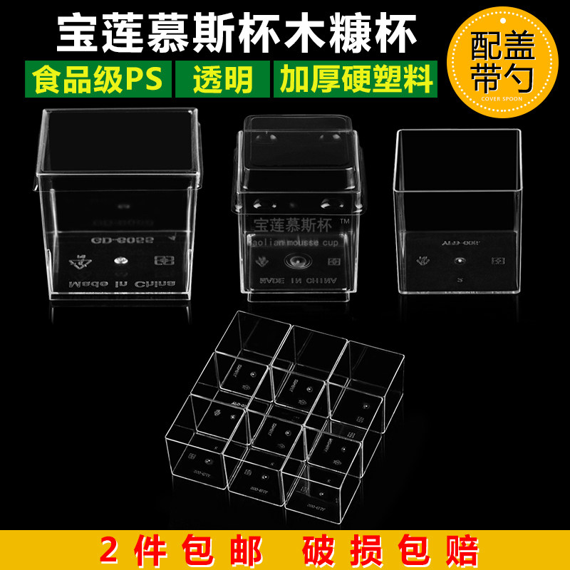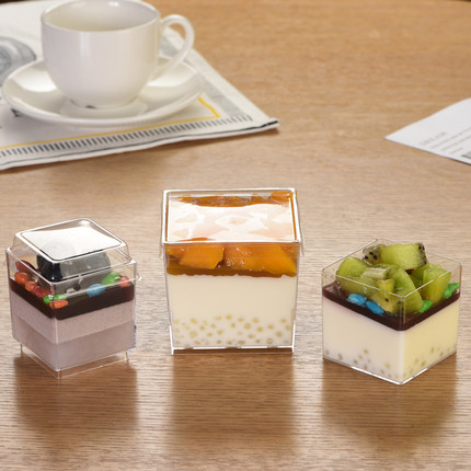 慕斯杯布丁杯果冻杯蛋糕方形一次性塑料杯子带盖透明创意九宫格