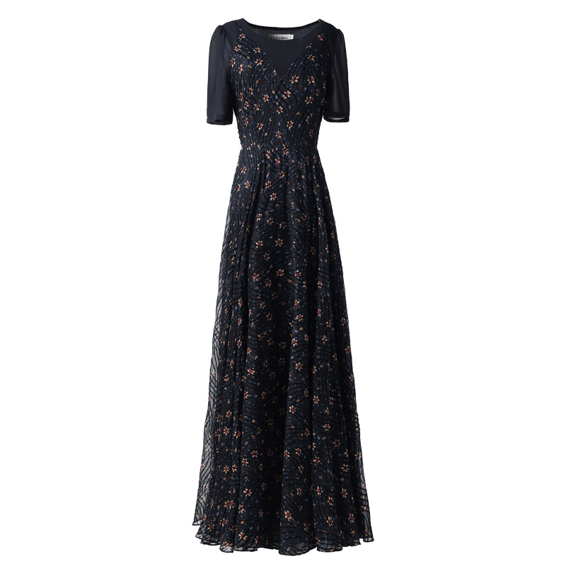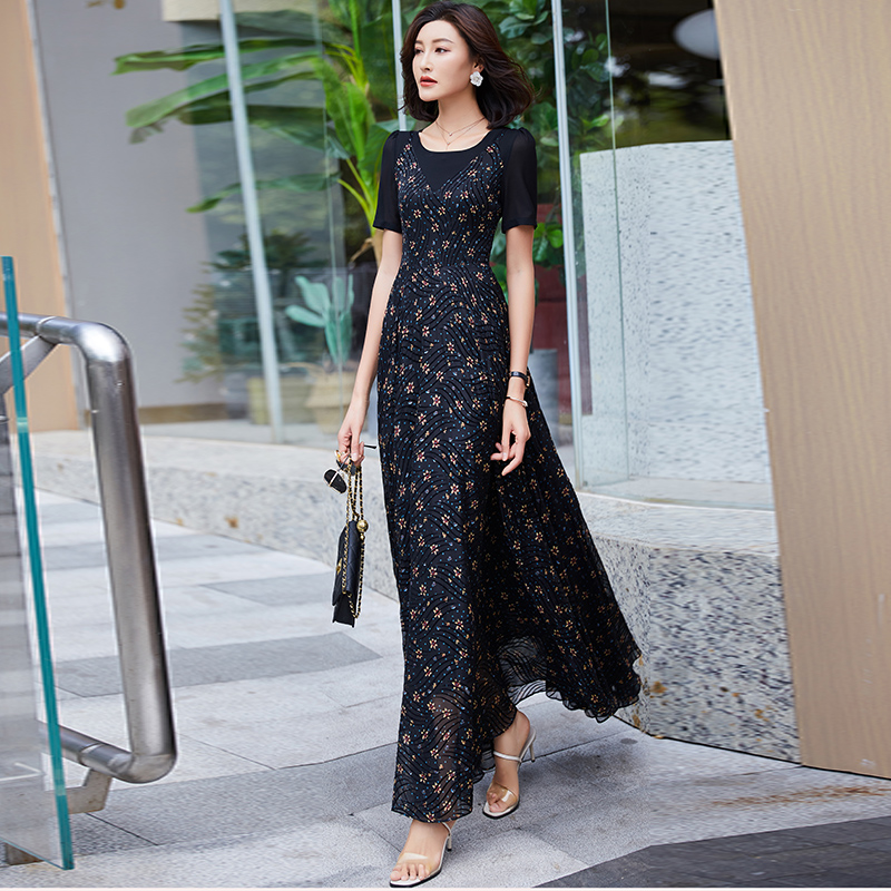 假两件连衣裙别致新款女夏大摆长款修身碎花沙滩长裙子到脚踝1428