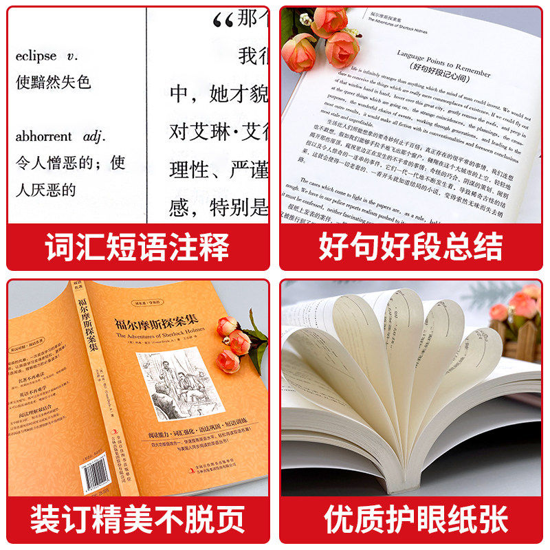 福尔摩斯探案全集英文原版正版原著完整无删减英汉对照中英双语小学初高中生课外阅读书籍英语读物世界名著小说畅销书排行榜书籍