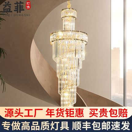 别墅水晶大吊灯旋转楼梯大堂酒店复式楼中楼大气宴会厅水晶灯具