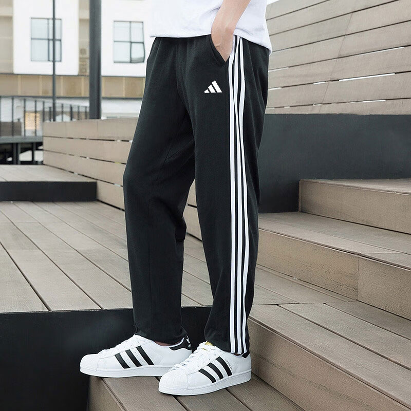 阿迪达斯运动套装男装黑色针织卫衣长裤子25新款休闲跑步两件套