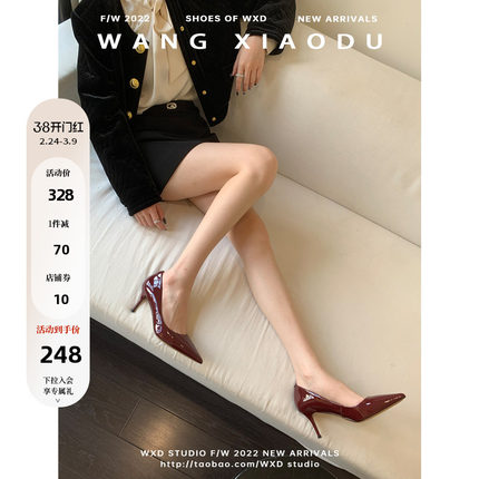 【王小毒】职场法则●太女人7cm真皮浅口细高跟鞋女尖头漆皮单鞋