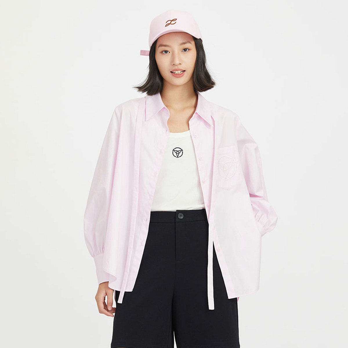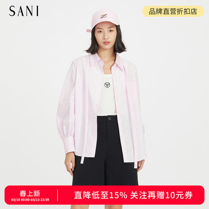 SANI商场同款2026秋季纯棉气质通勤不规则长袖衬衫刺绣百搭女上衣