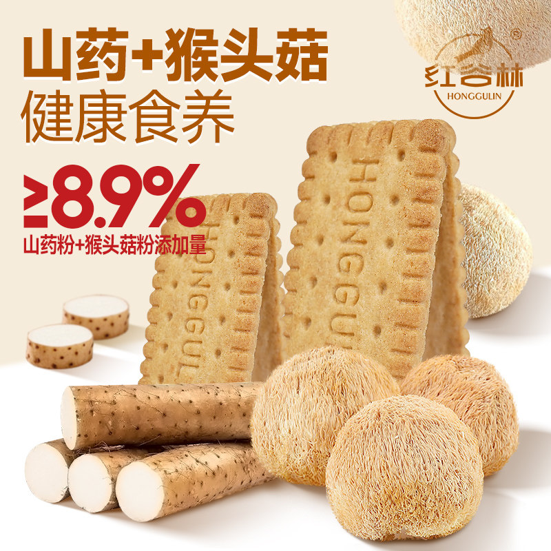 红谷林无糖山药猴头菇饼干酥性早餐胃休闲解馋办公室追剧零食礼盒