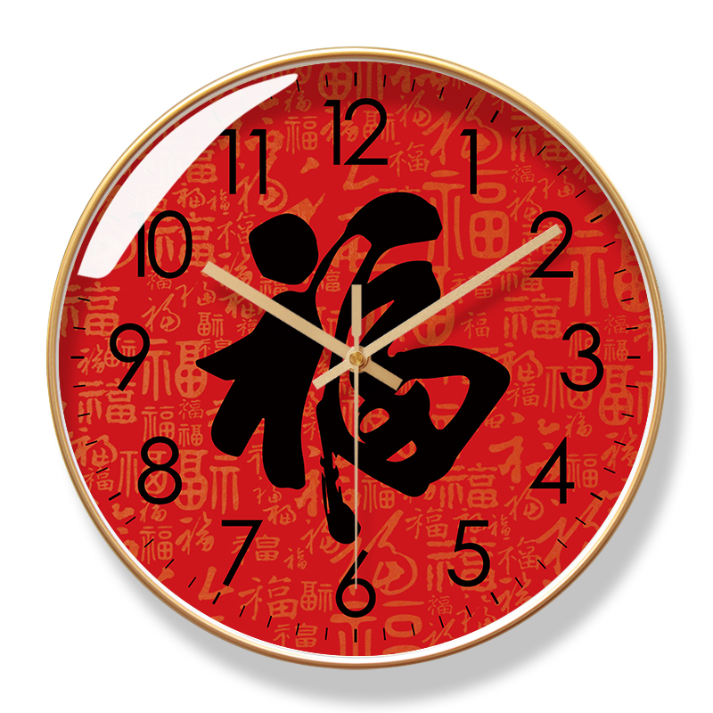 自动对时电波钟6011福字吉祥客厅钟表挂钟国风中式挂表时钟挂墙钟