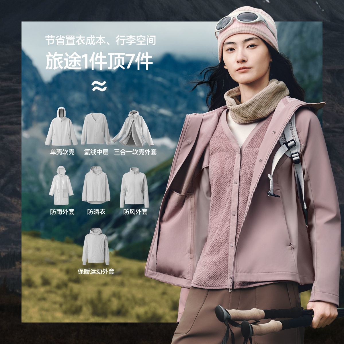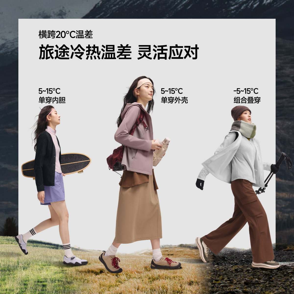 蕉下软壳衣女新款三合一防风防泼水户外徒步旅游登山软壳冲锋外套