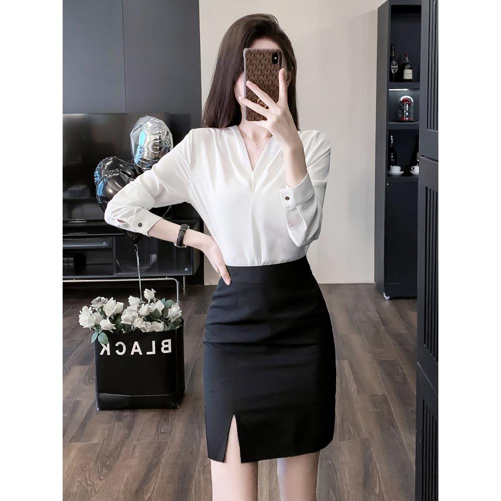 工作服职业装半身裙套装白色衬衣女ol前台接待高端空姐制服工作装