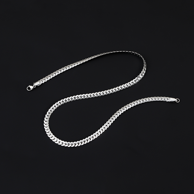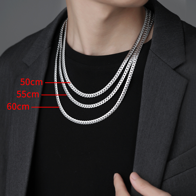 项链男生潮牌百搭高级感新款钛钢毛衣链子银色扁密马鞭链男士项链