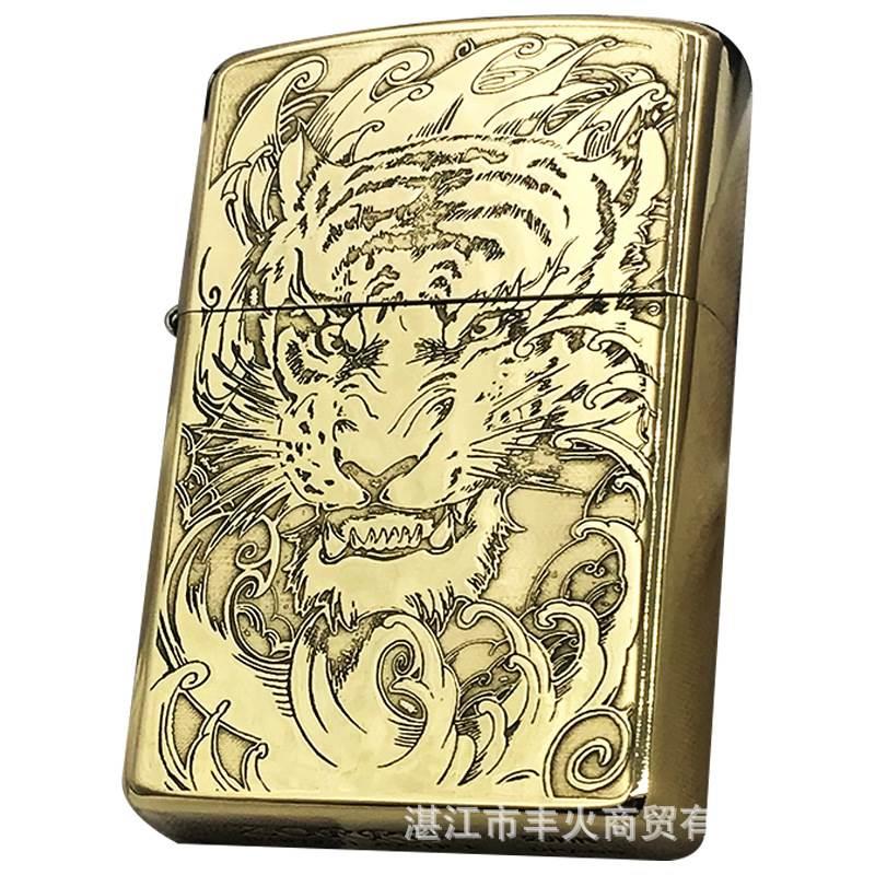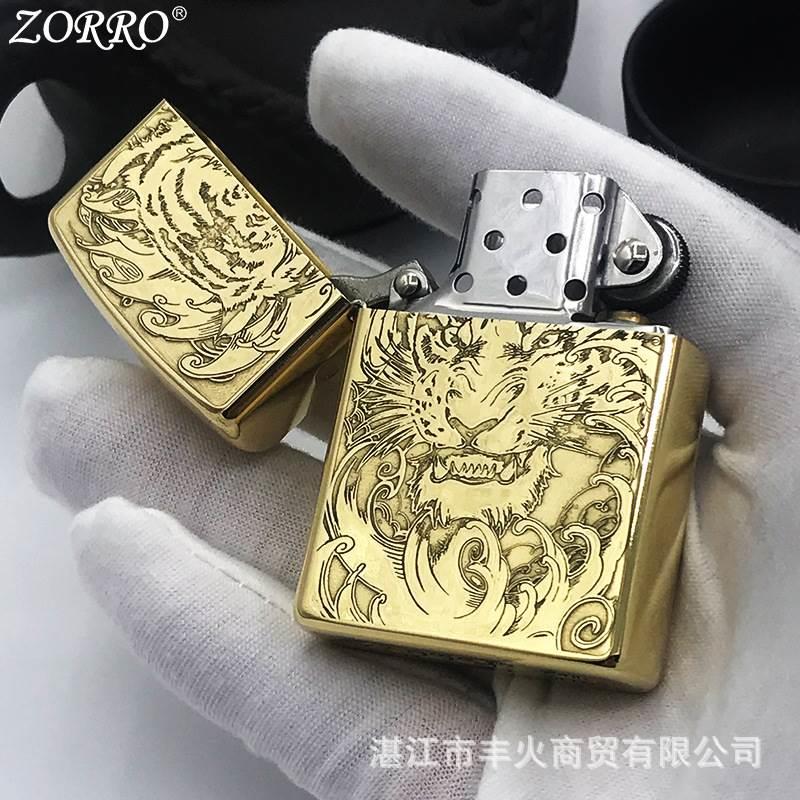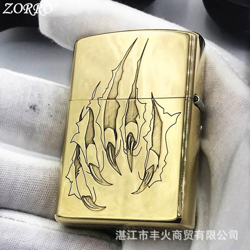 ZORRO佐罗虎头利爪黄铜煤油打火机精雕蚀刻复古个性精品