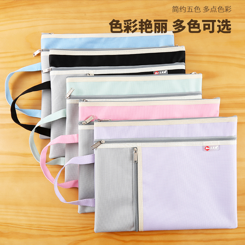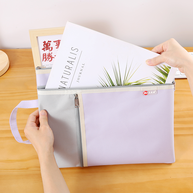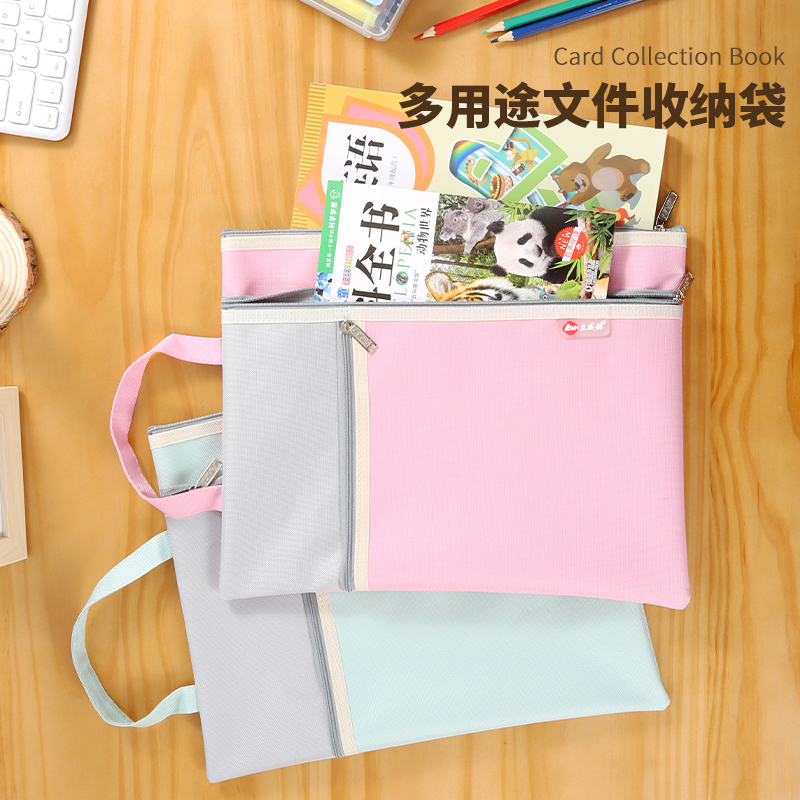 A4文件袋三层手提帆布袋学生用补课袋男女资料包防水大容量A5文具收纳袋简约款加厚拉链式考试袋B超单孕检袋
