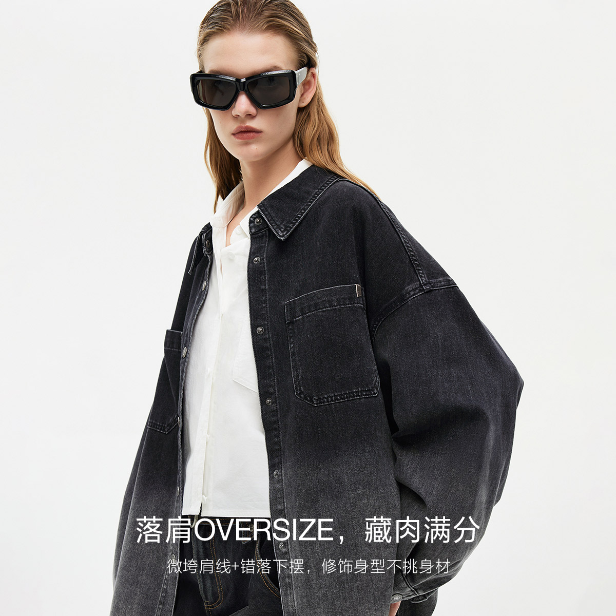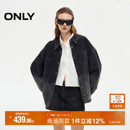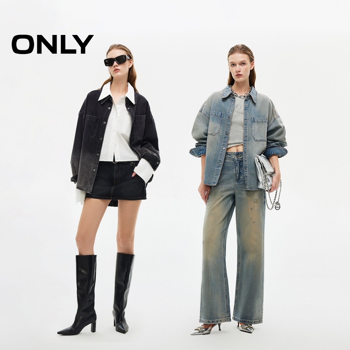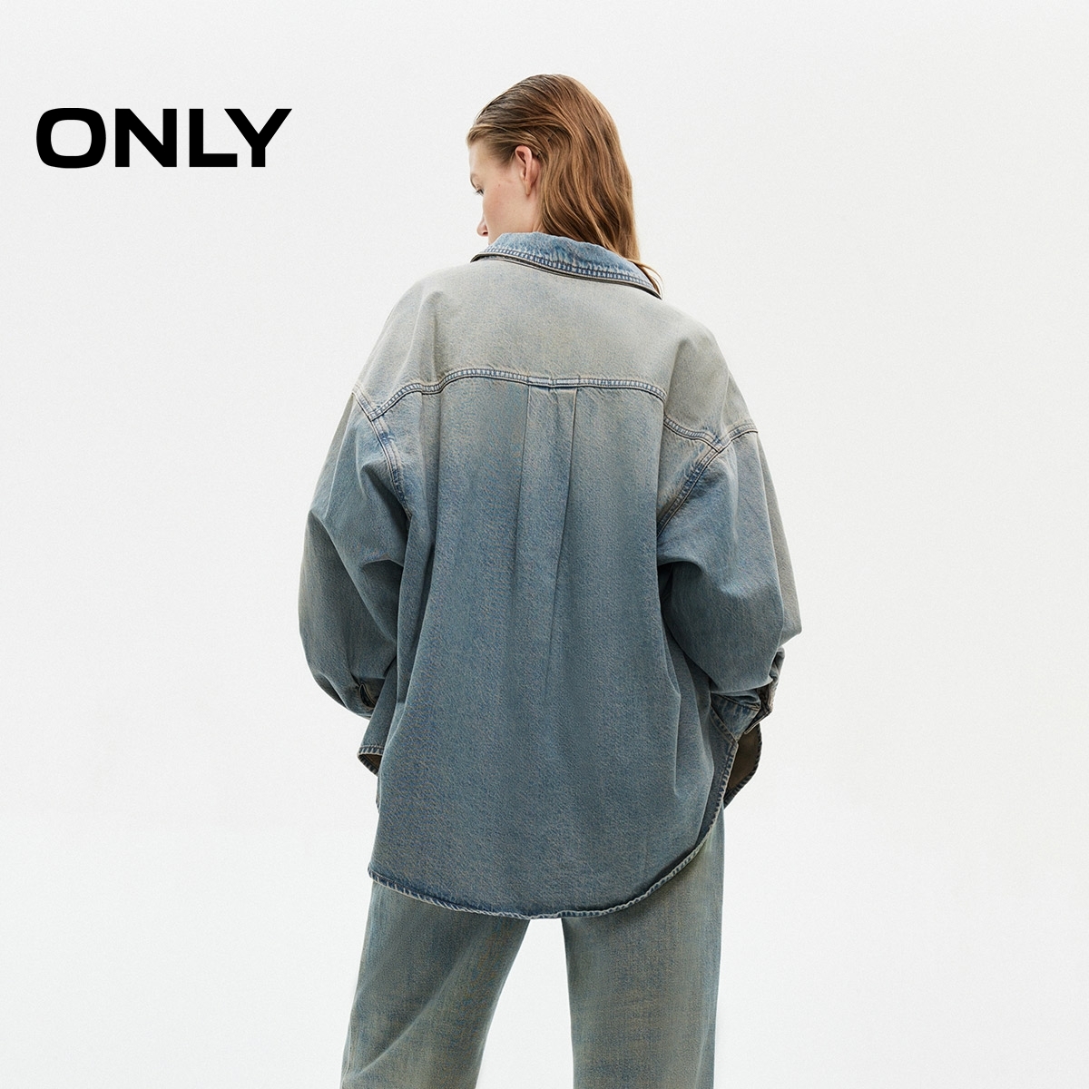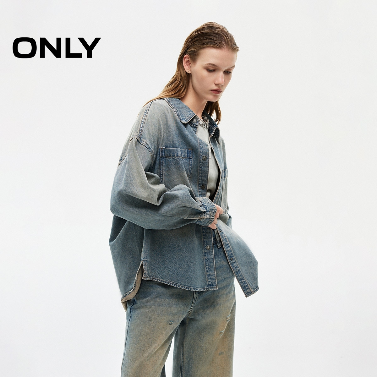 ONLY2025秋季新款弧形裁剪宽松单排扣翻领落肩长袖牛仔衬衫女