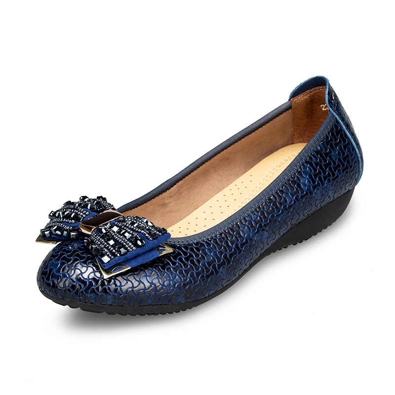 大码女鞋41一43中年妈妈鞋真皮软底舒适低跟水钻单鞋四季鞋女平底