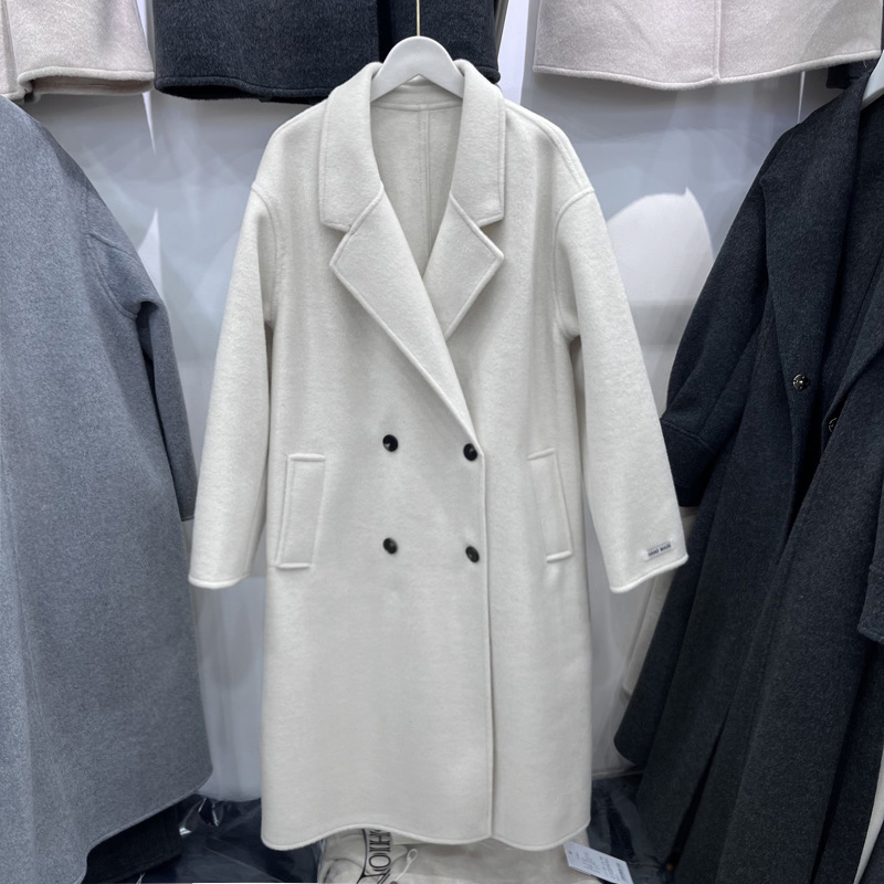 韩版双面羊毛呢大衣女冬季双排扣百搭中长款长袖呢子外套