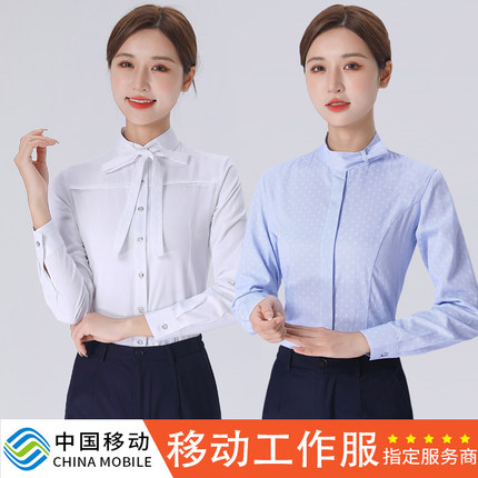 新款移动工作服女长袖衬衫春秋营业厅员工制服工装蓝白色衬衣套装