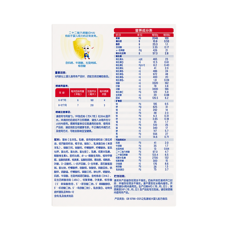 佳贝艾特 晶萃悦白较大婴儿配方羊奶粉(6-12月龄,2段)