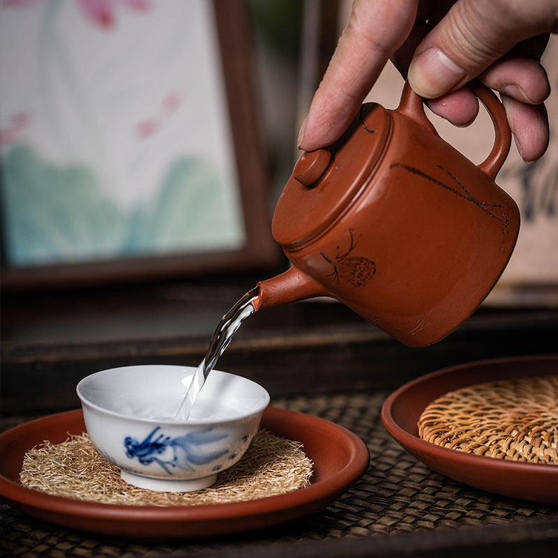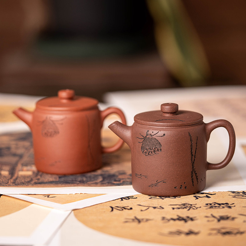 宜兴周婷手工雕刻莲蓬高汉瓦壶紫砂壶大开口紫砂泡茶壶功夫茶具