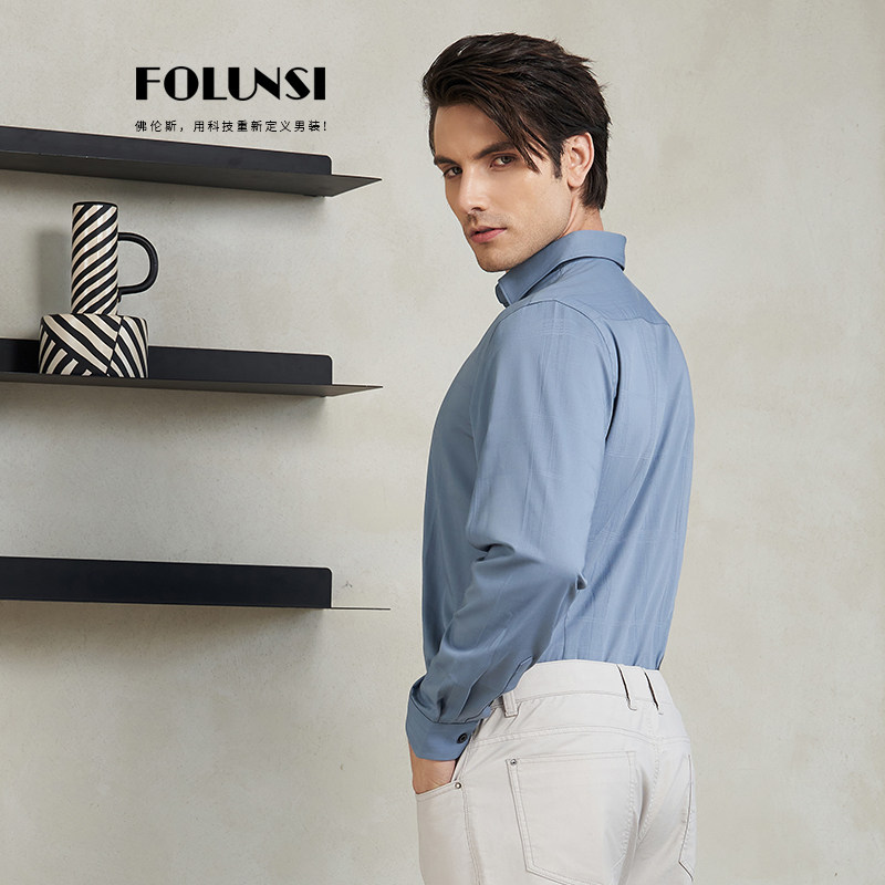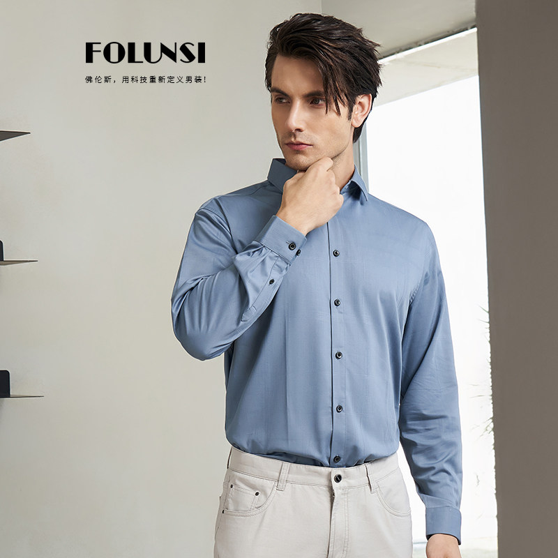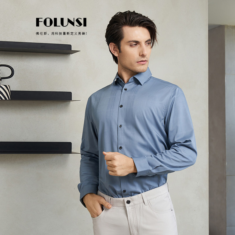 佛伦斯folunsi2024年新款男衬衣春秋款商务绅士时尚休闲长袖衬衫