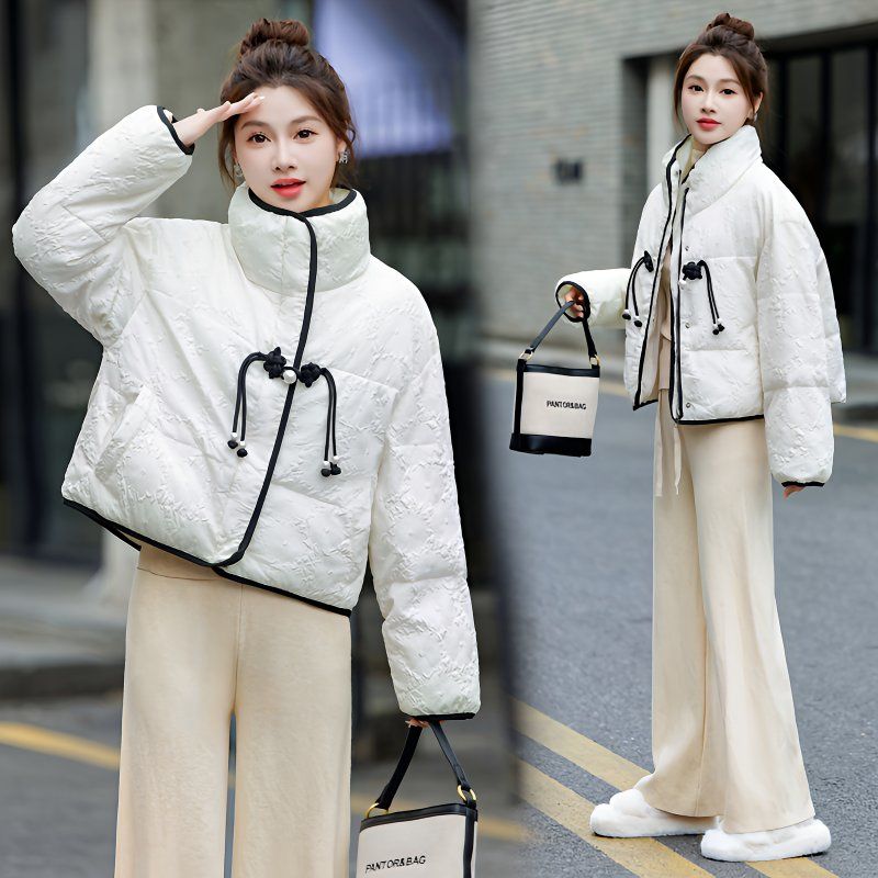 新款中国风提花年轻棉衣冬季短款加厚保暖棉服小香风外套爆款