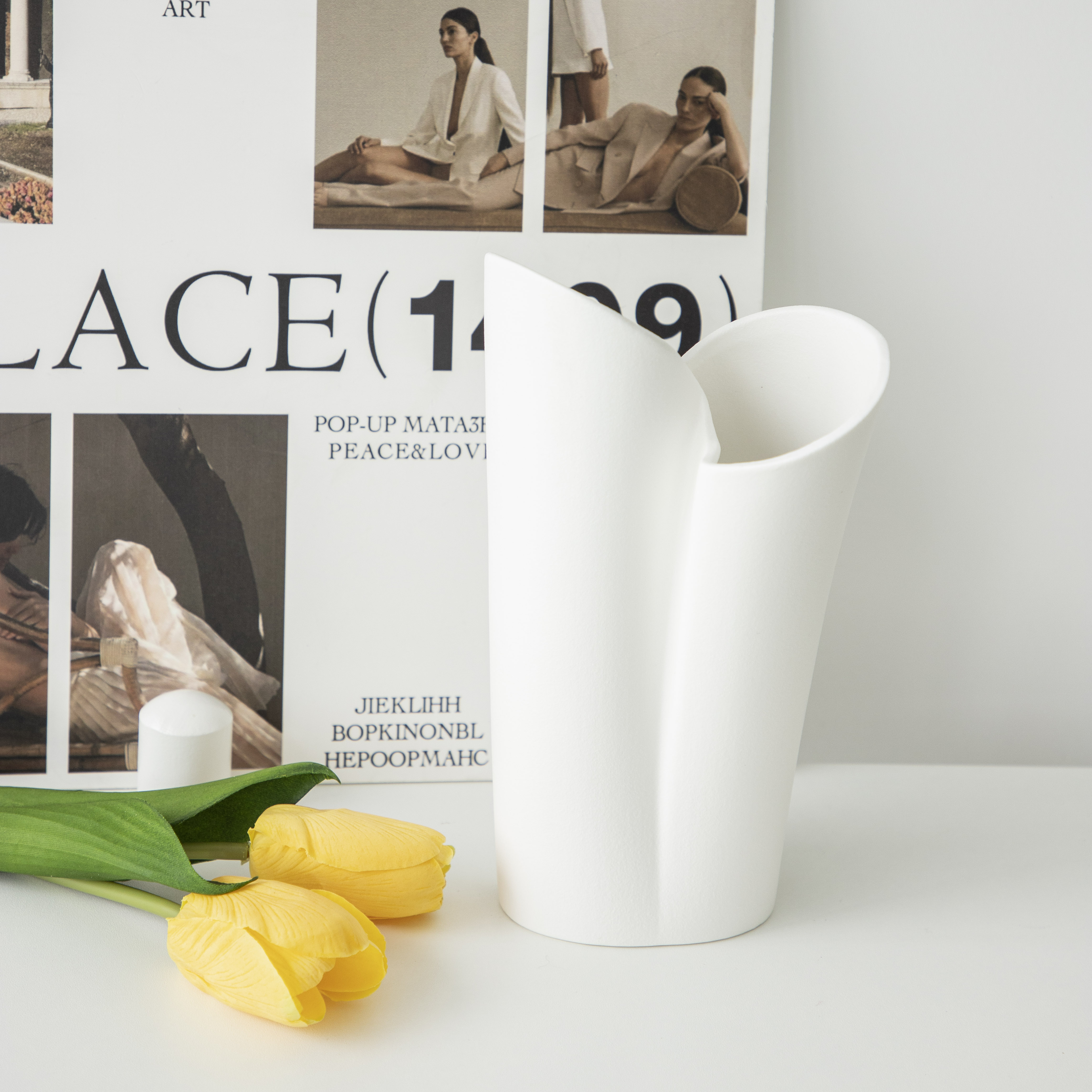 寂器 北欧几何白色简约磨砂陶瓷小花瓶干花水培玄关装饰艺术摆件