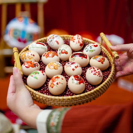 结婚订婚周岁竹编小提篮圆形茶点心水果篮子糕点藤编托盘满月百天