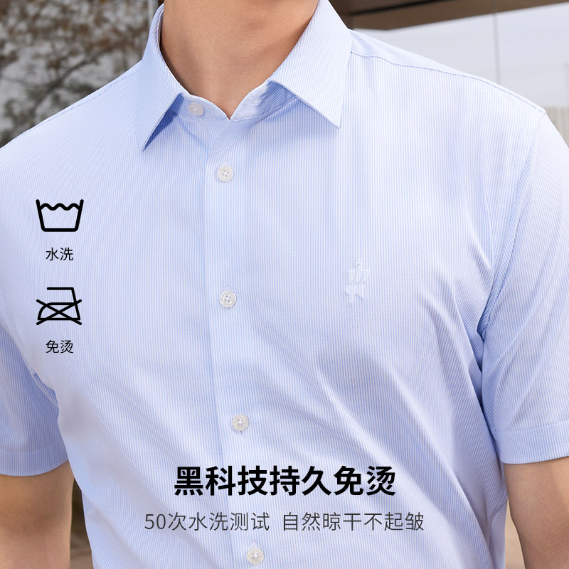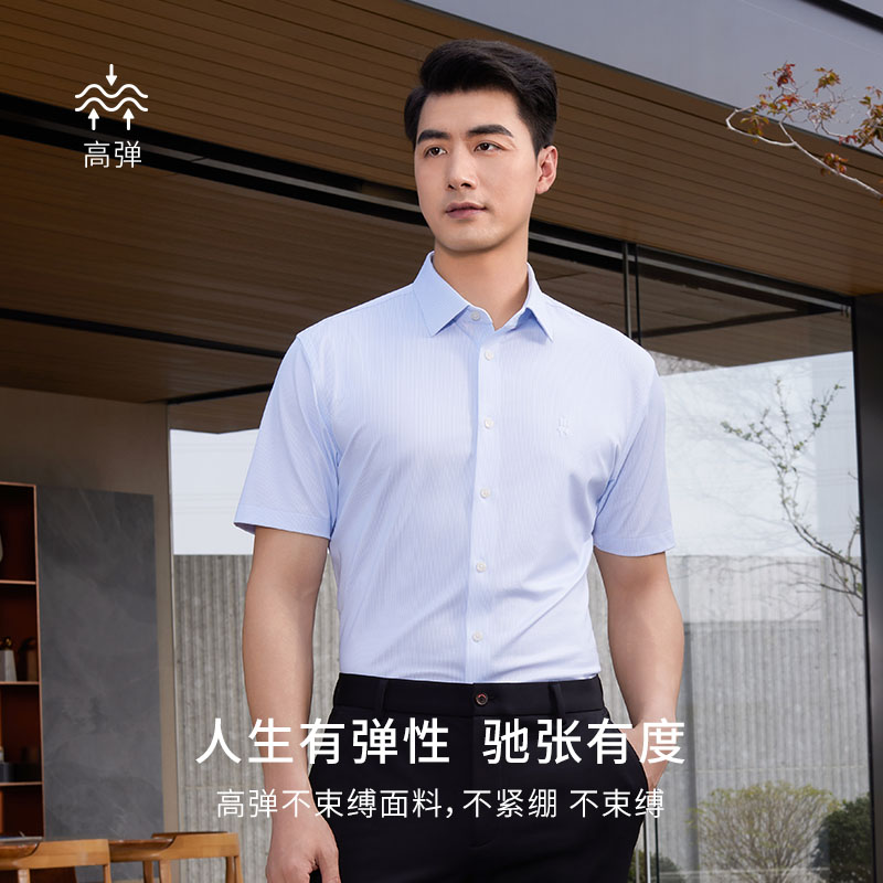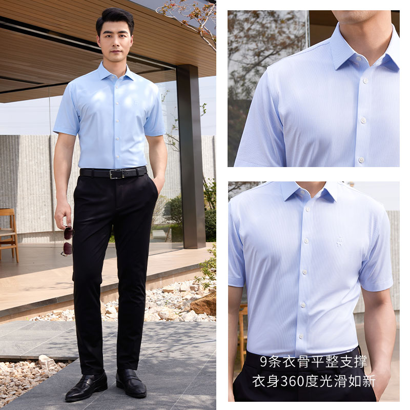 【高级桑蚕丝】欧定头等舱条纹衬衫男短袖新款晶丝蓝藏丝高端定制