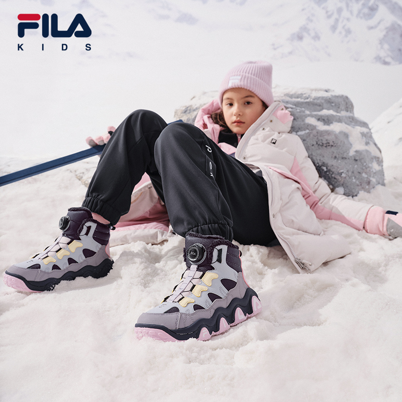 FILA斐乐儿童雪地靴冬新款舒适男女童加绒加厚高帮棉鞋保暖运动鞋