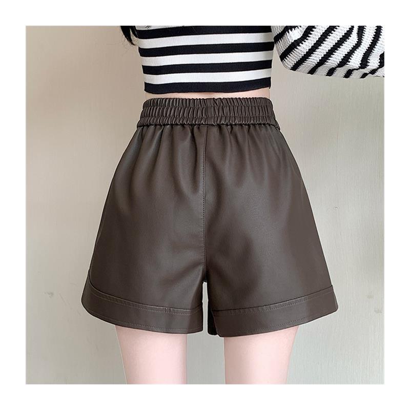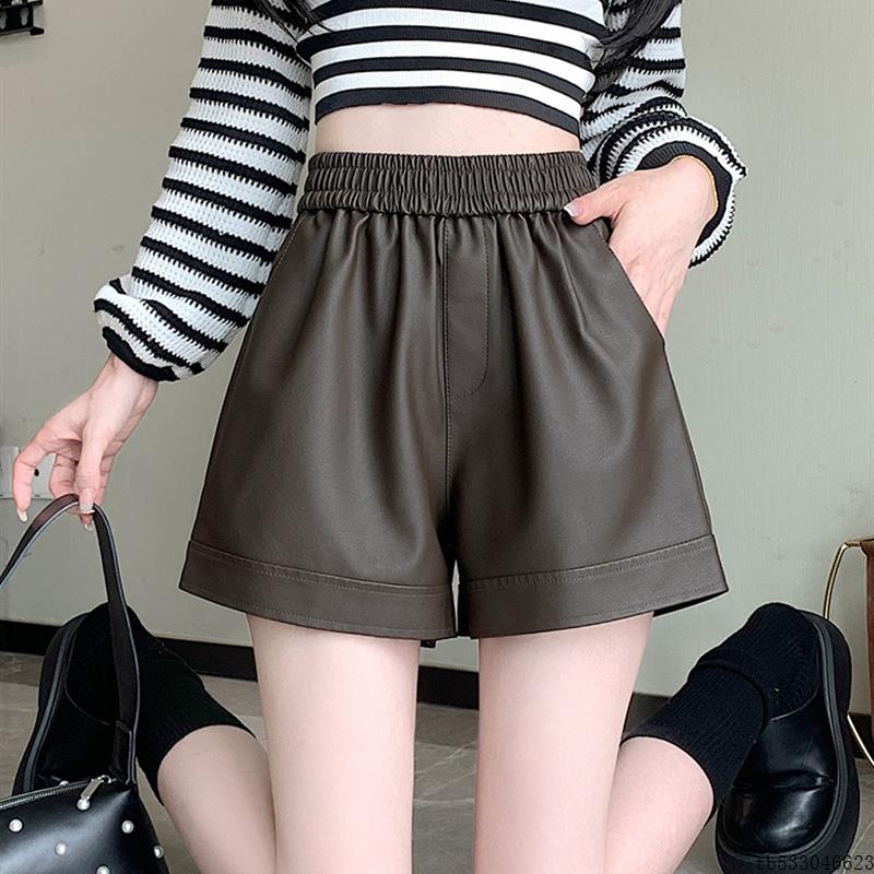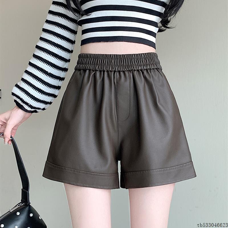 皮短裤女2025新款秋冬季高腰显瘦PU皮时尚咖色宽松a字休闲阔腿裤