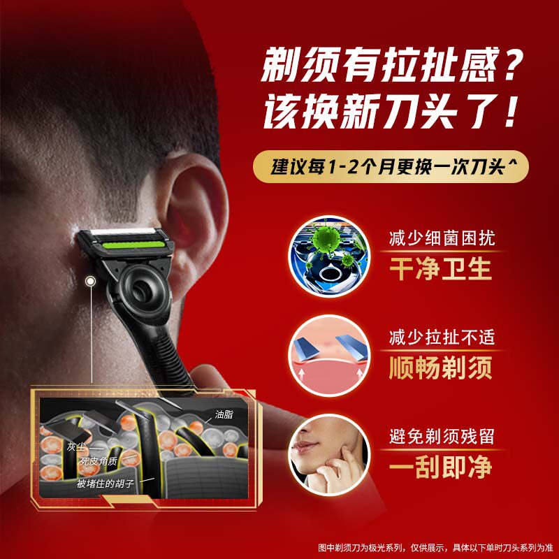 吉列全系列手动剃须刀适配刀头极光刀头致顺引力盒刀头锋速三刀头