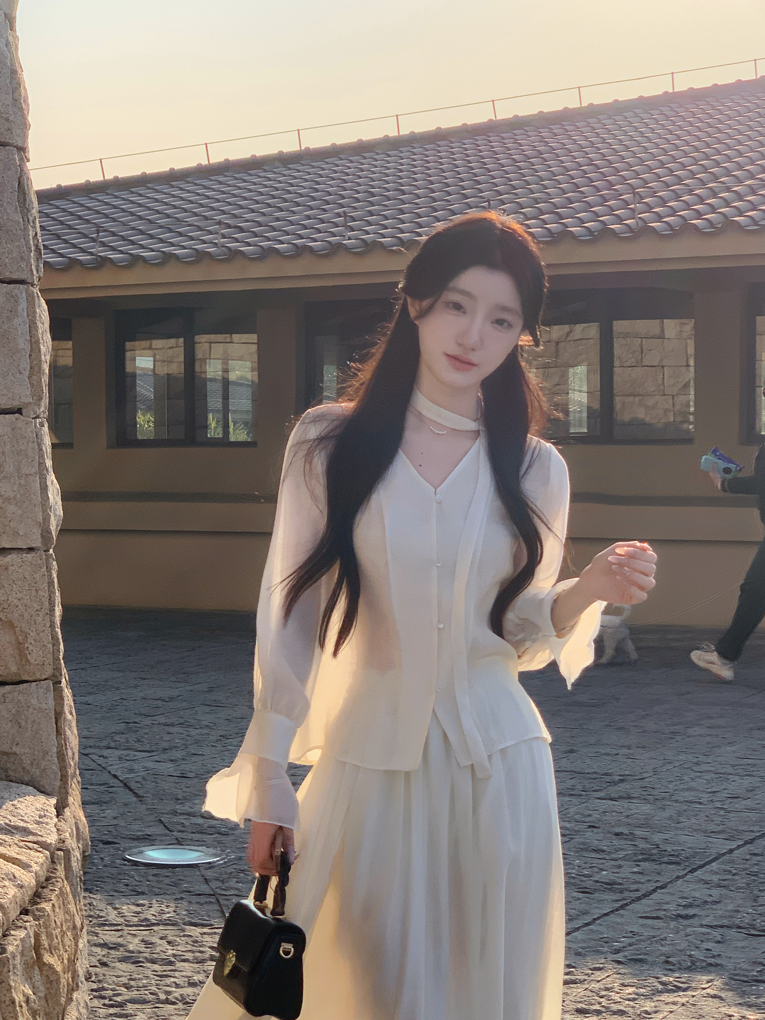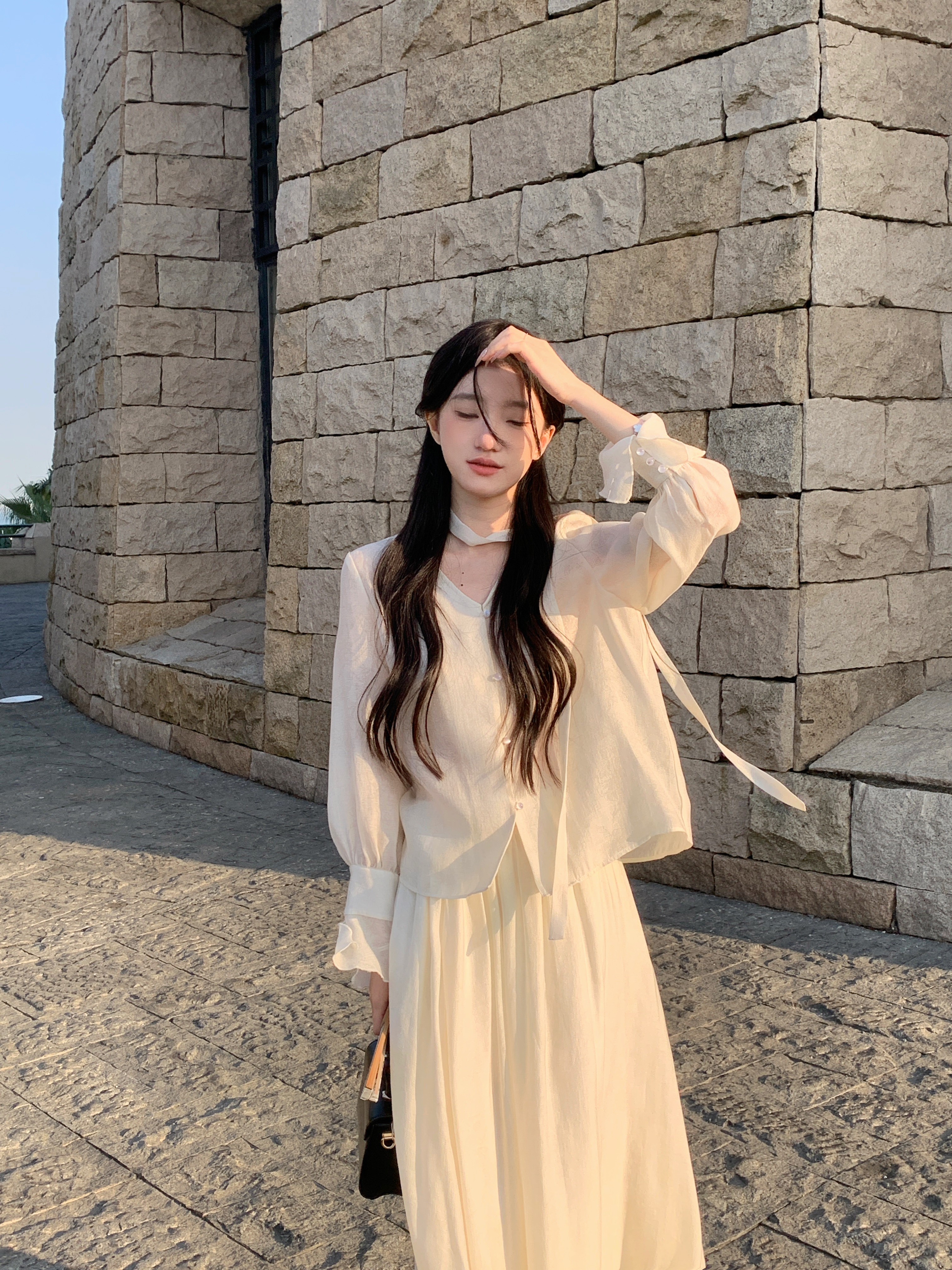 YIYIWANG 不知春 85%天丝新中式衬衫半裙两件套仙国风高级感套装