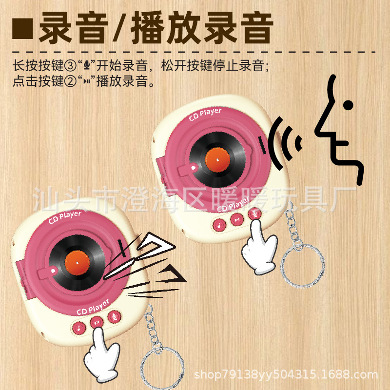 放碟复古片音乐扣包音机播放器可片黑胶唱机钥匙迷你cd机包挂件录