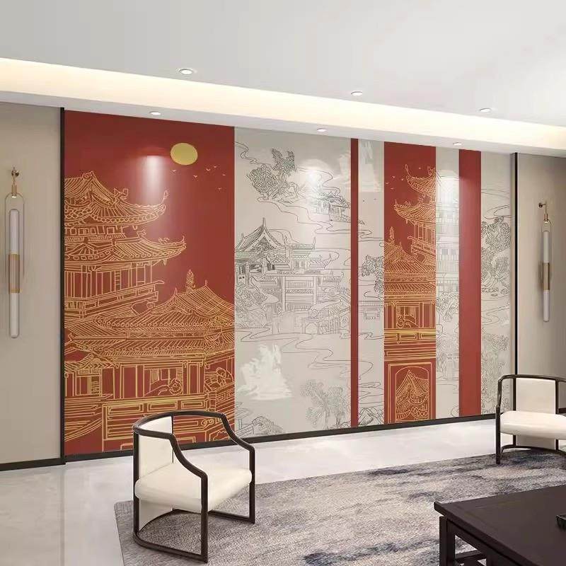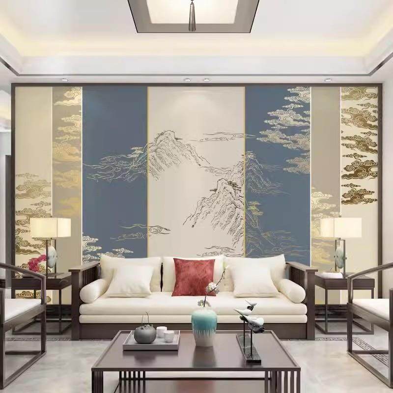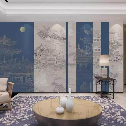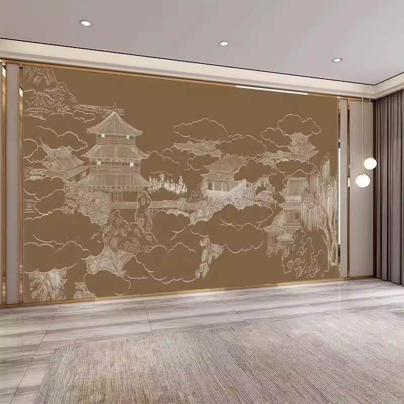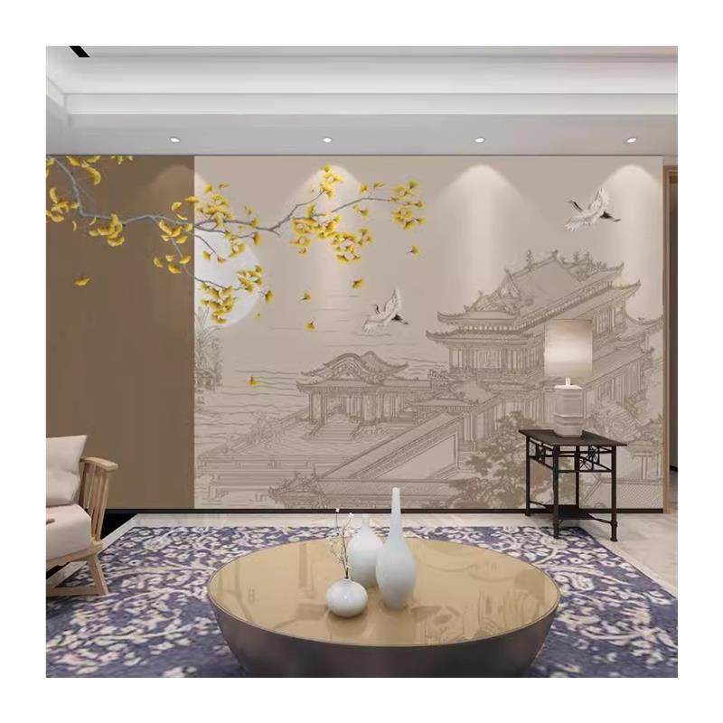 中式古风建筑卧室壁纸沙发楼阁背景墙布饭店宾馆包厢自粘宫殿壁画
