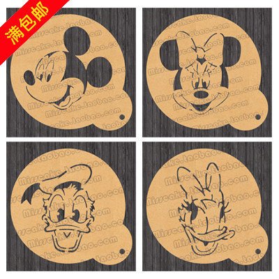 3片包邮迪士尼米老鼠米奇玲娜贝儿3寸饼干印花咖啡拉花撒粉模具